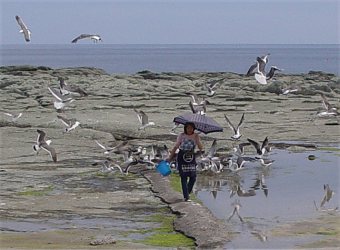 カタツムリのような貝が不気味でした。外ではかもめに魚のあらをやって
