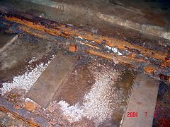 体験坑道の線路はボロボロ、塩も吹いてます。
