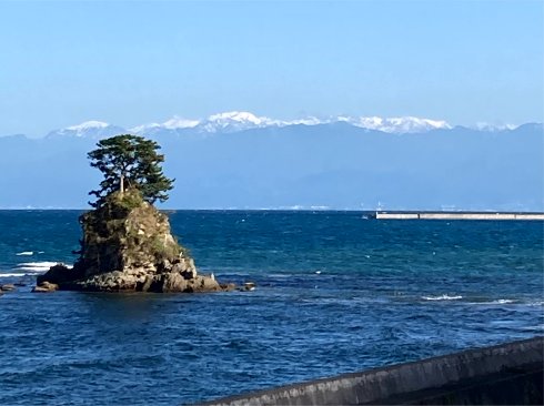 | 雪を頂いた立山連峰が富山湾越しによく見えてます。 |