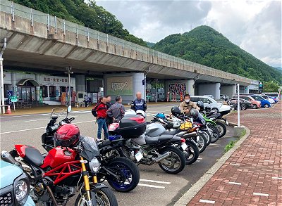 はぐれてからの一服は、道の駅白馬、市振と微妙にずれていました。最後、数秒だけヒロカワさん御一行3人に追いつき