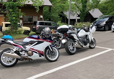 | 恒例のぞば屋さん「岳」で新旧3種のVFR |