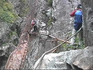 斜面をアタックしているのは下の廊下というところで、残雪のため暫定で作られた回り道です。