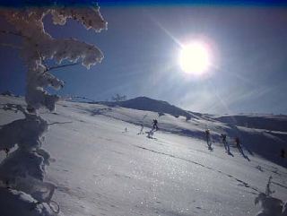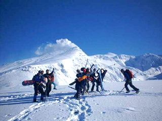上富良野町の十勝岳!の隣の三段山というところ。2時間ほど登ってから弁当食って 滑り降りてきました。 写真は参加したツアーのガイド氏が撮ってくれたものです。