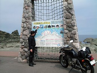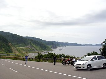 ここの辺りは右の白神山地、左の日本海(千畳敷)と大変