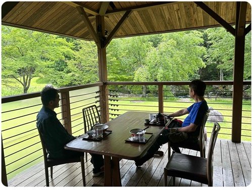 大人数のため隣同士の「岳」と「白樺食堂」に分かれて昼食 |