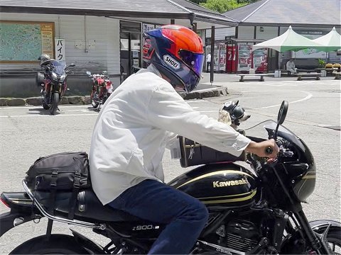 | 颯爽とZ900を乗りこなす飼い主さんとワンちゃん |